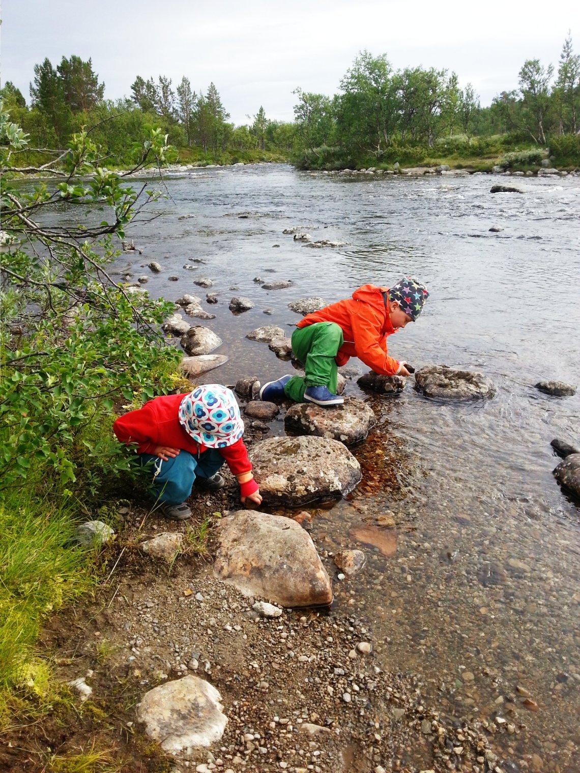 Vi kom till Grövelsjön sen eftermiddag, checkade in på Sjöstugan och gick sen en mycket kort tur över älven Grövlan och en bit upp mot fjället. Vi ville bara landa i fjällmiljön och ta in alla nya intryck. Det blev en härlig kväll där barnen verkligen tog till sig frihetskänslan i fjällen och sprang långa sträckor längs leden.