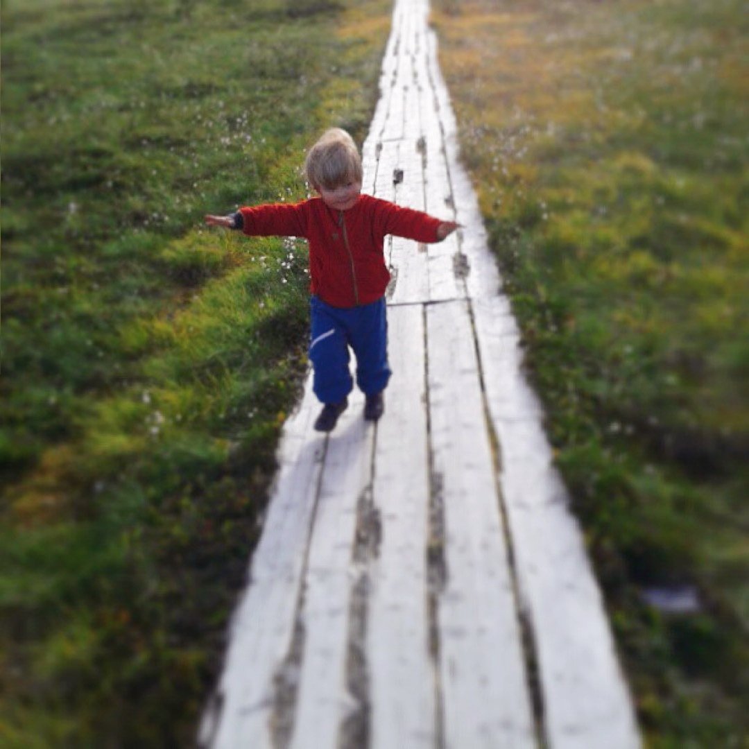 Nu undrar kanske någon om treåringen klarade att gå hela vägen? Svaret är att han orkade ungefär 3-4 av 5 km. Resten av vägen bar vi honom. Han hade inte heller alls samma driv som oss andra att ta sig framåt längs sträckan. Jag funderar mer kring det i ett annat blogginlägg: Det här med att gå rakt fram