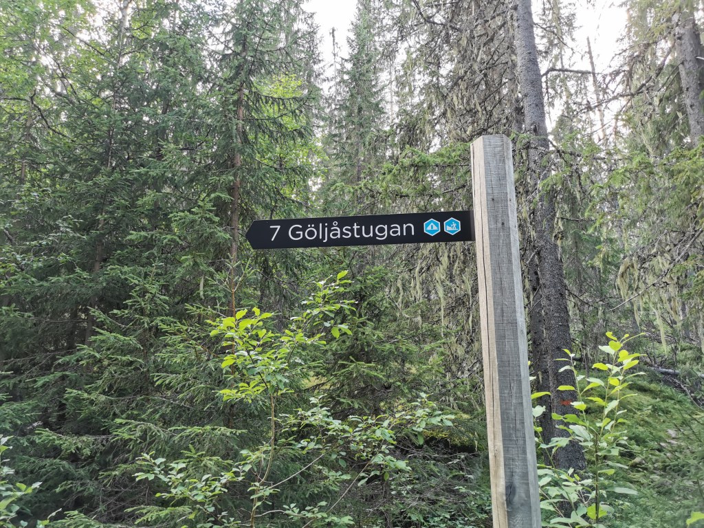 Göljåleden startar en bit söder om entrén till Fulufjällets nationalpark och det går att komma till starten på leden från två håll. Vi valde den norra parkeringen för att enkelt kunna köra upp till Njupeskär efter vandringen. Leden bjuder på väldigt växlande och vacker natur, med myrar, skog, den brusande Göljan och dalgångar med fin utsikt.